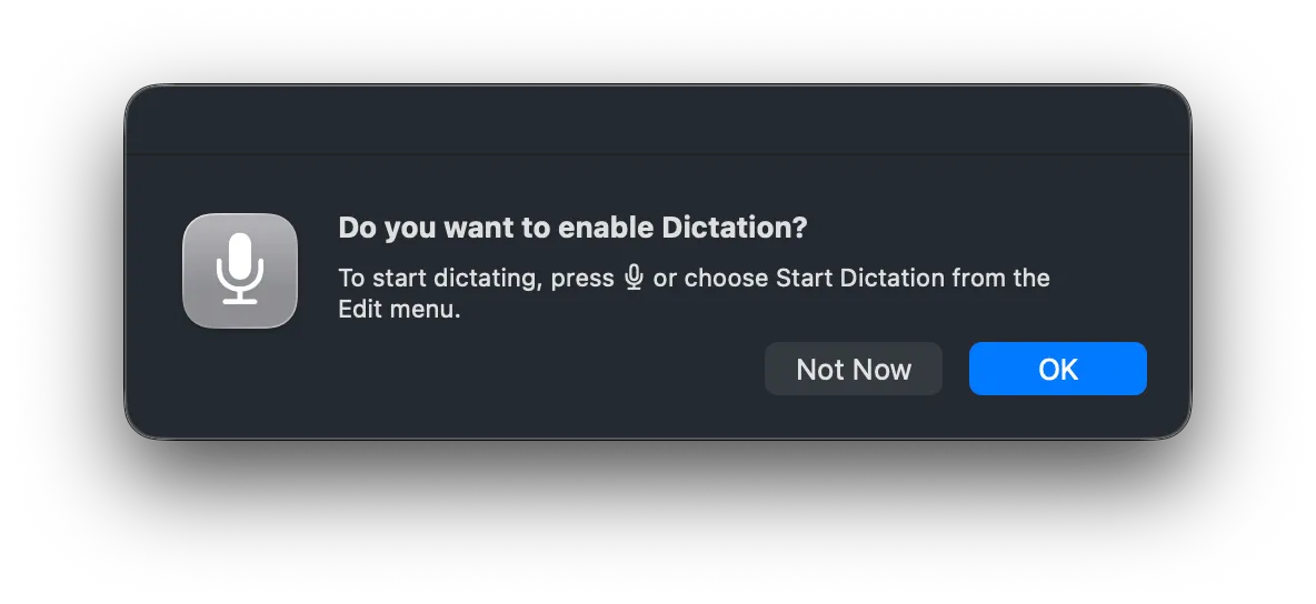 Problem #2: The dictation shortcut key on mac is reserved for Apple’s native dictation, and cannot be repurposed for third party apps. At least, whenever I try, I get this: