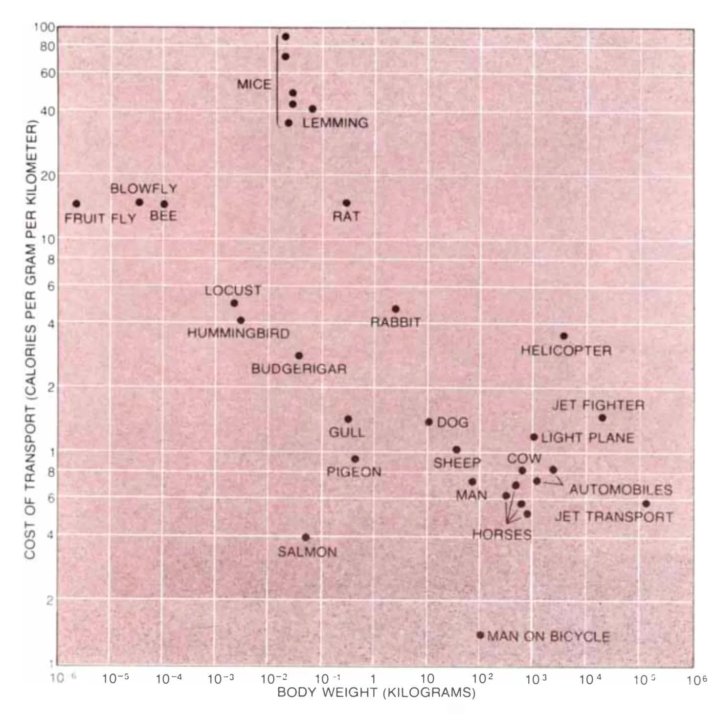 But, in the end, the truth is in there: that us homo sapiens do indeed demonstrate a so-so performance while “man on bicycle” beats all the other natural species by a large margin.